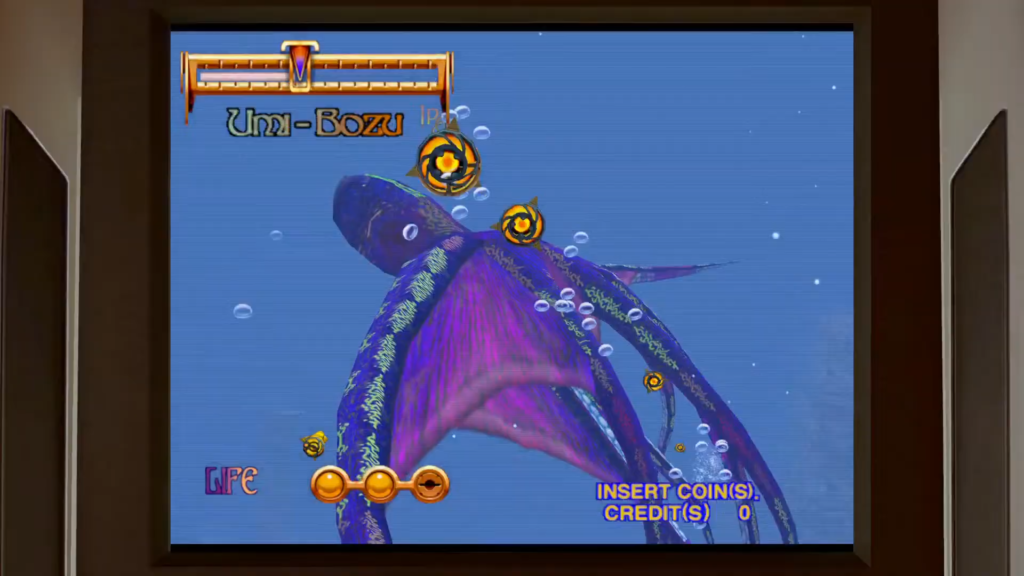 前半は泡を吹いてこちらに飛ばし攻撃してくる、打ち落とせるし本体を打ち続ければ泡がどこかに飛んで行ってしまい防げる時がある、でも大人しく泡を打ち落とす方が安定かな。