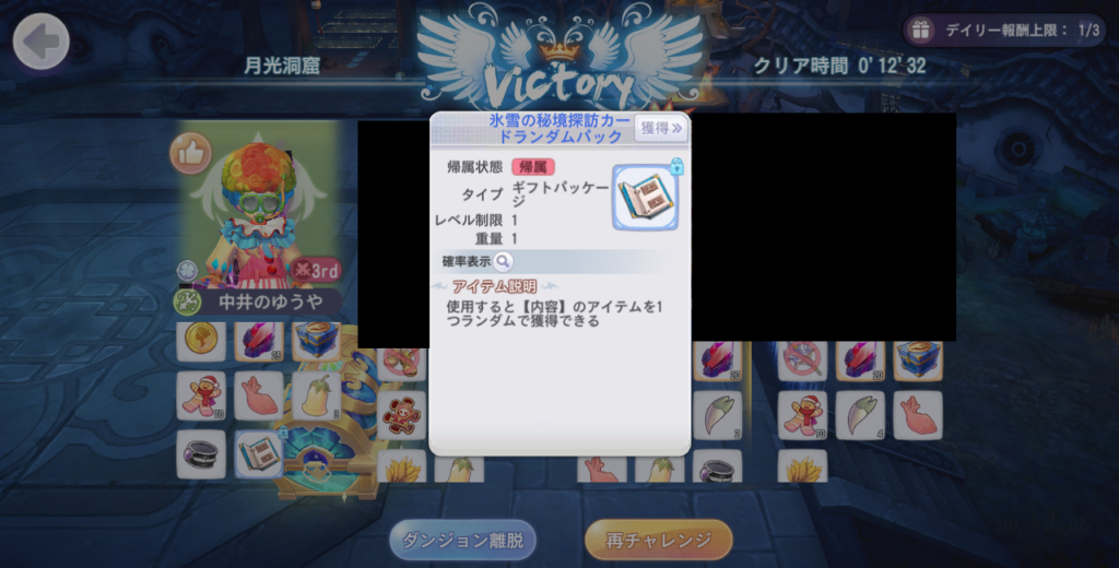 パーティーを組めない時は「ピラミッド」のヘルモードを回しています。一人でもクリアできますし、ドロップアイテムは自分では使いませんが、そこそこの金額で売れるので、時間がない時はここかなぁと思っています。