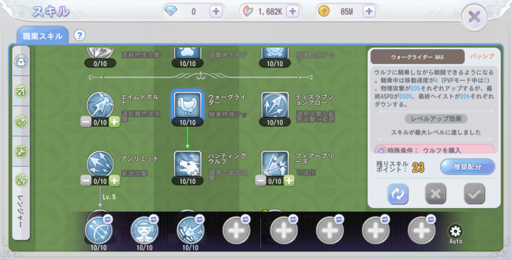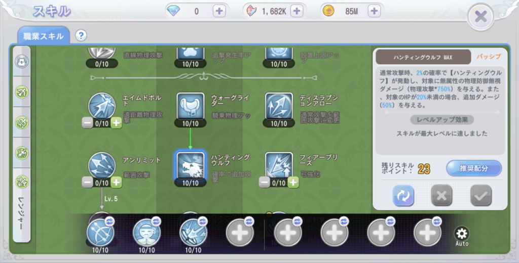 この4種のスキルを新しく取得したぐらいかな、あとは特に変更なし。新しい称号か何かが解放されたのでそれでも少しステータスが上がった気がする。