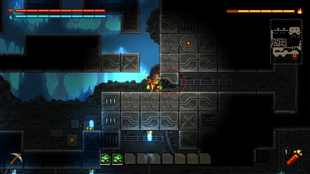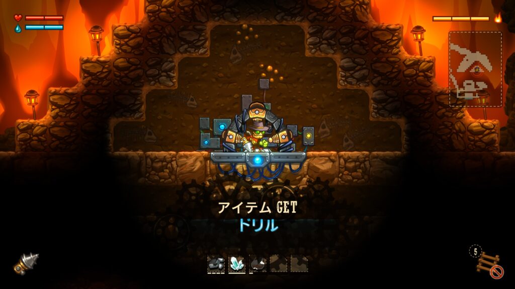 遊んだ感じは「ミスタードリラー」のような穴を掘って下に潜っていく要素と、「メトロイド」や探索系「悪魔城ドラキュラ」を合わせたようなイメージ。第一印象は「なんとなく面白そう」といった感じでした。
