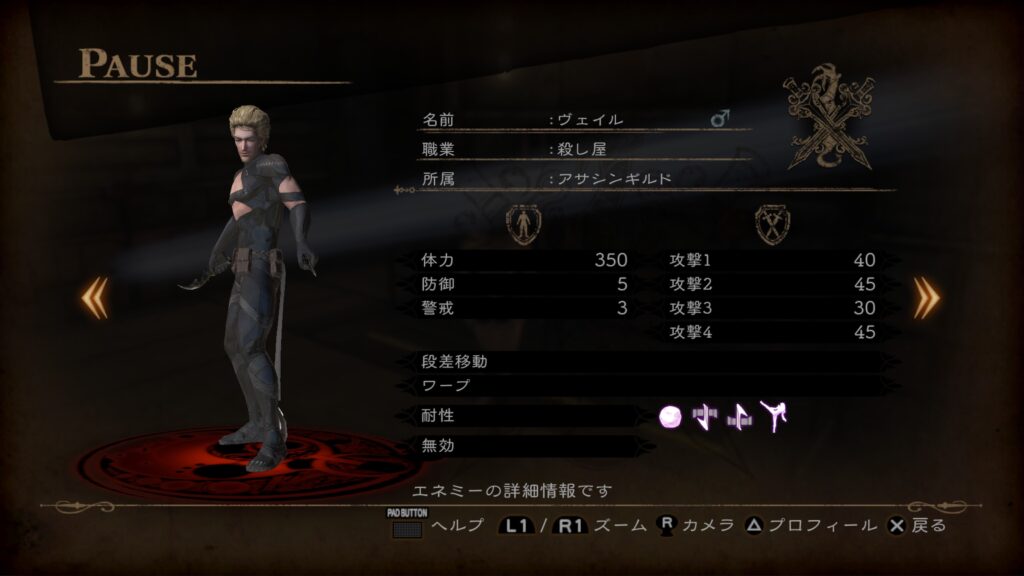新しい職業、アサシンの敵が登場しました。画像のヴェイルはボスなので特別強いですが、アサシンという職自体がかなり厄介な気がします。