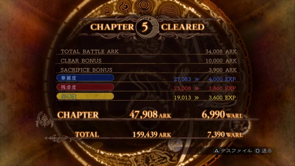 リザルト画面です。「WARL」はトラップやアビリティを開放するための通貨ですが、相変わらず「ARK」を何に使うのかがイマイチ分かりません。