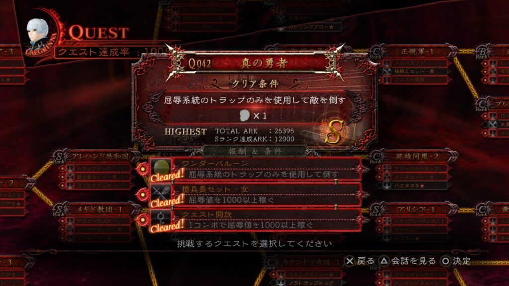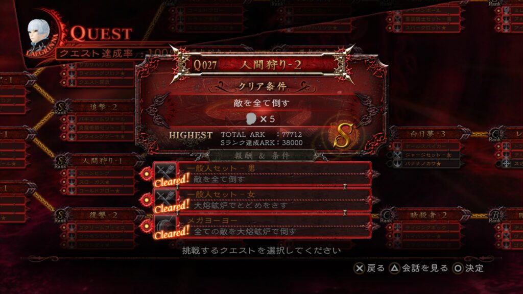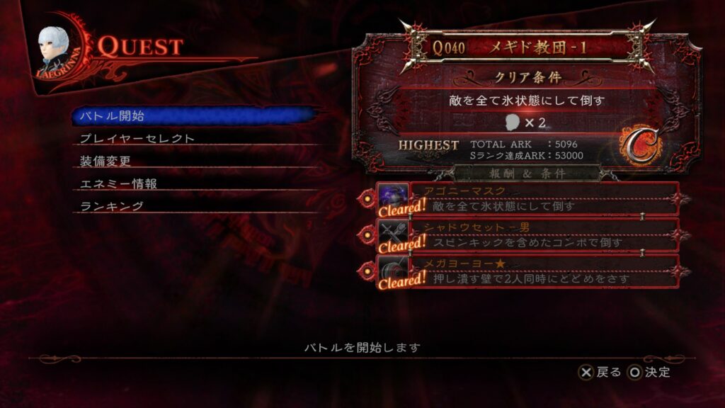 残った1体に、クエスト29で使ったコンボでARKを稼ぐ。幸いにも、ランクSに必要なARKは少ないので達成しやすい。
