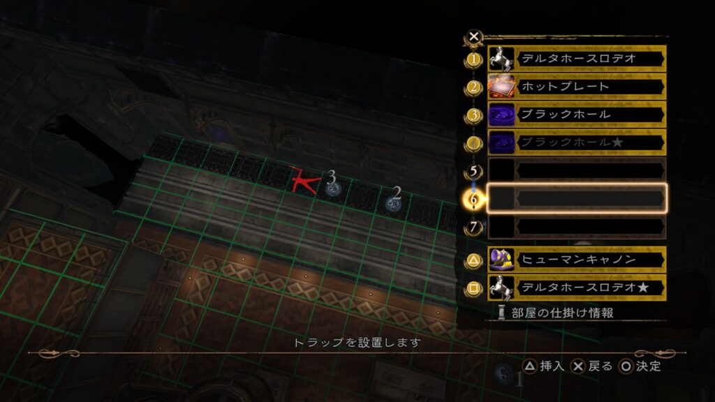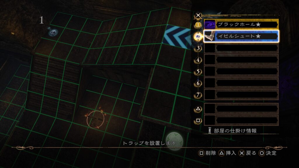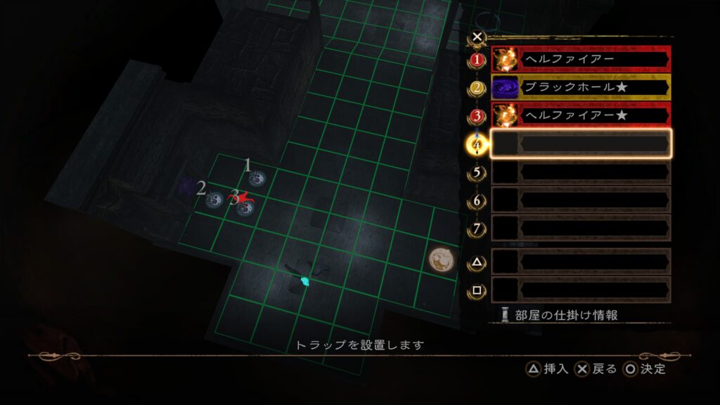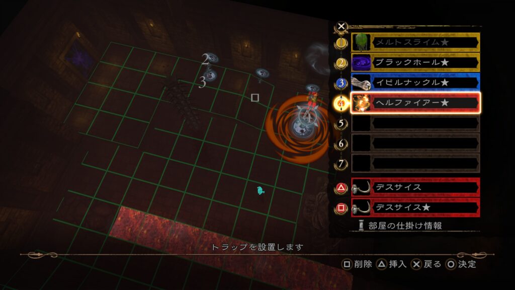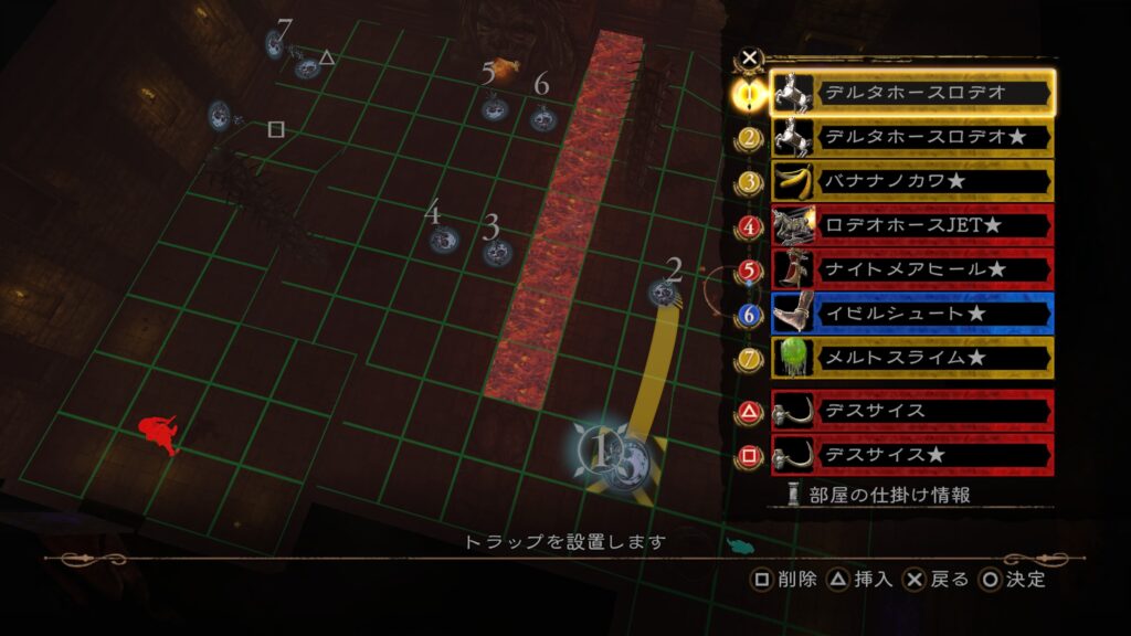 メルトスライム★を当てた後は拘束時間が長いので、その間にトラップを組み替える。以下が後半だ。