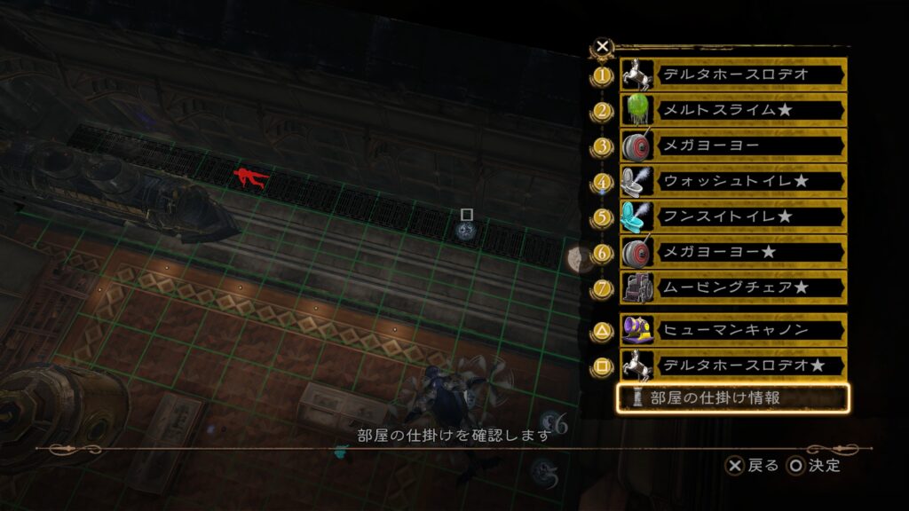 残りの「押しつぶす壁で二人同時」は、相変わらずチャージゼロを使用してクリアした。ダメージが低いもので体力を調整し、最後は拘束系のトラップで拘束した後、壁に挟んだ。押しつぶす壁は発動が遅いので、長時間拘束できるトラップを使用しないと厳しい。
