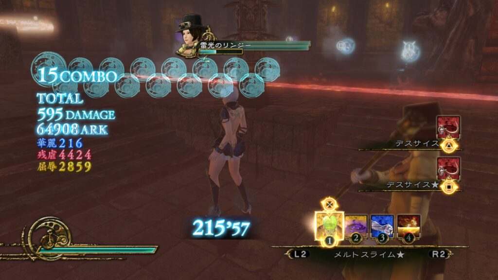 上記のコンボを当てた際の敵の残体力。たまたまだけど、かなりのギリギリで生き残ってくれたので、再度同じコンボを決めクリア。最初の画像の様に 25,000 までARKを伸ばすことができた。