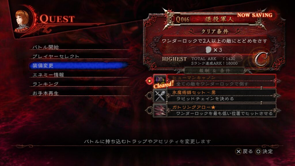 リザルト画面とクエスト詳細画面を忘れちゃったけど、「仕掛けを3個以上当てる」が追加条件。