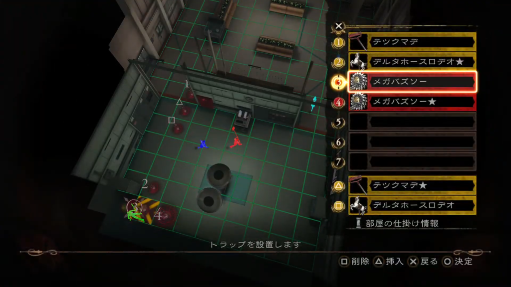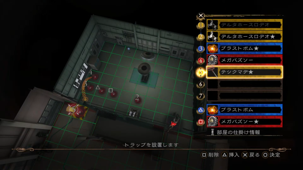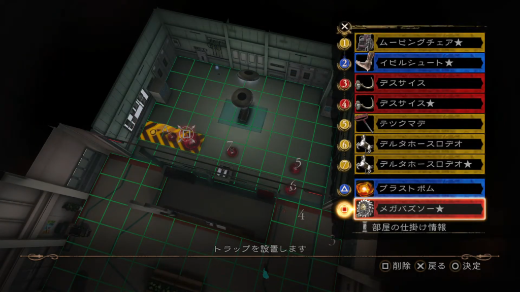 これに部屋の仕掛け「移動する椅子」×2と「手術台」を挟む。これでクリア条件とSランクを達成できる。
