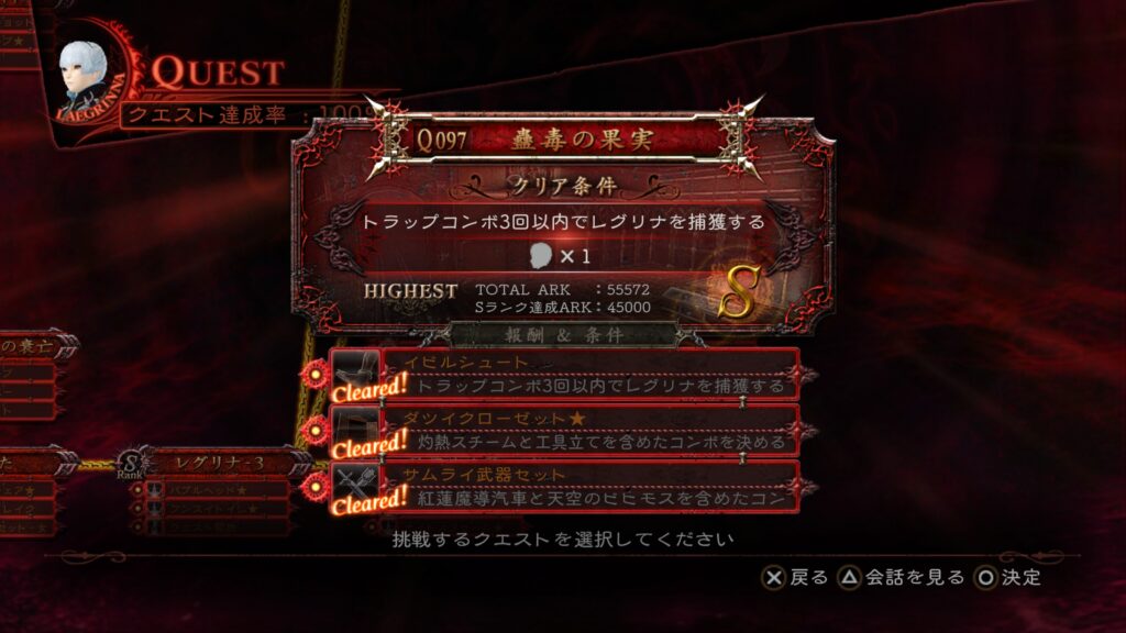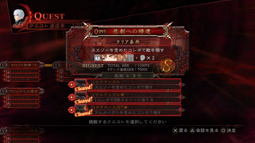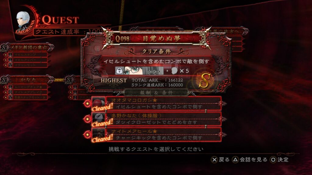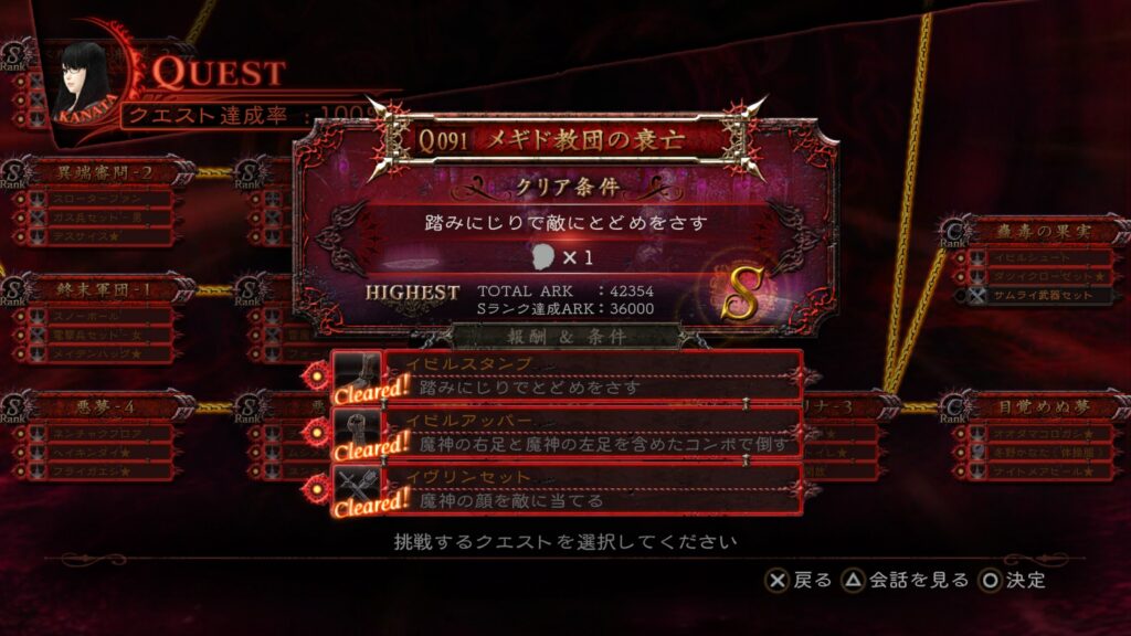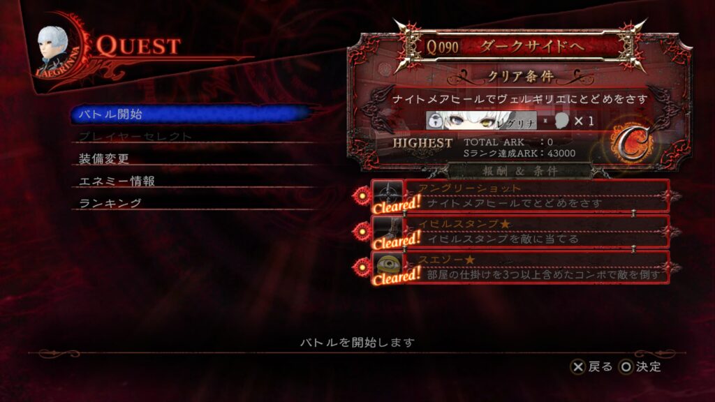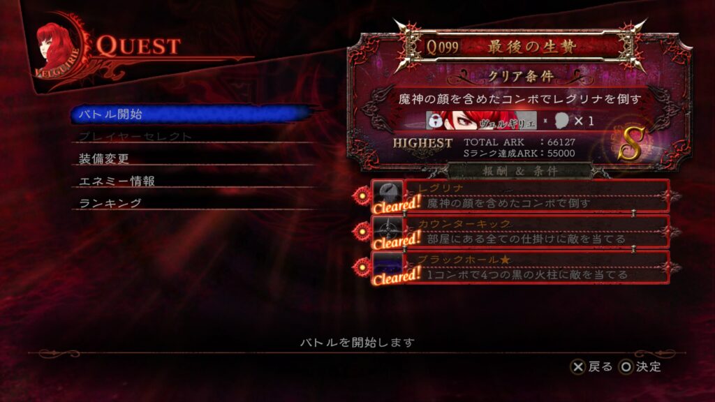 相変わらずステージが「祭壇」なので、「魔神の顔」を発動させる条件を組み込みつつ倒すだけで、Sランクも条件も達成できる。