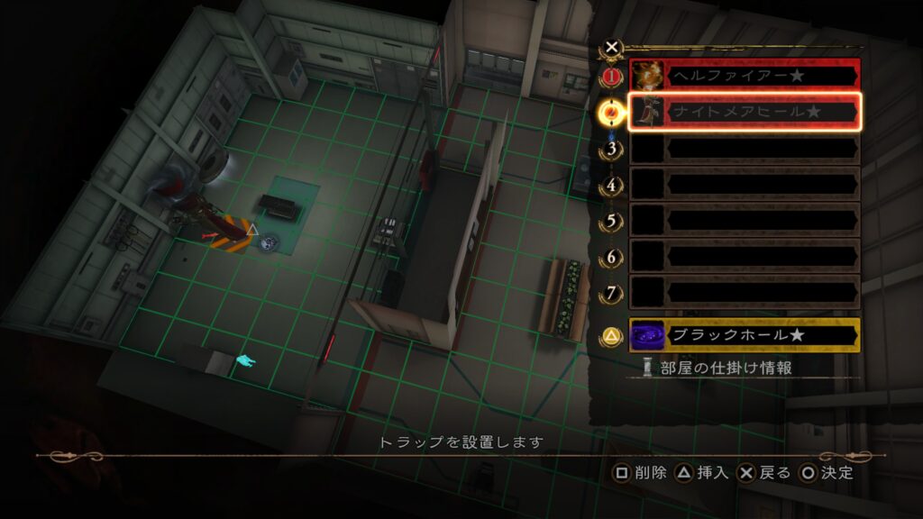 ここは追加条件とSランクを切り離してクリアした。 追加条件の「部屋にある全ての仕掛けに敵を当てる」は、「チャージゼロ」で何度も動かしてやったが、案外仕掛けのダメージが高く繋げるのが難しかった。実行する際はダメージの低いトラップで仕掛けに当てたいところ。しかし 1回のコンボでなくてもいいので、「スプリングフロア」などのダメージが低く移動させられるトラップで地道にやるのが良いのかもしれない。