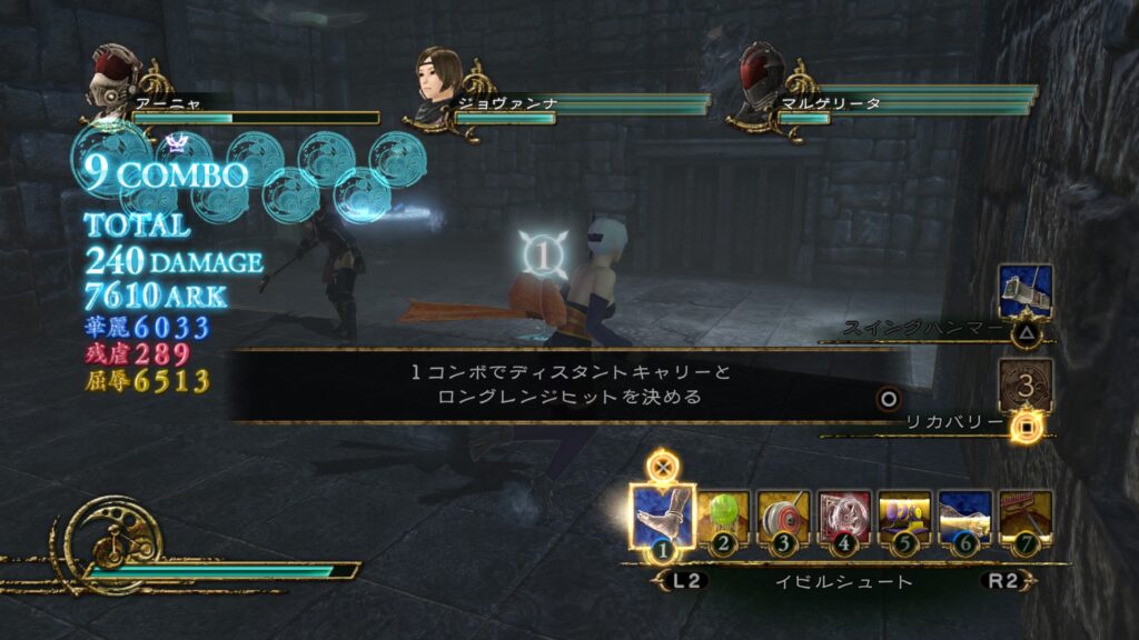 「ディスタントキャリーを決めろ」というお願いが発生しましたが、調べてもゲーム内の情報しか出てきません。おそらく造語でしょう。辞書機能が欲しいところです。適当にコンボを繋いでいたら達成できましたが、結局何が正解だったのかは分からずじまいでした。