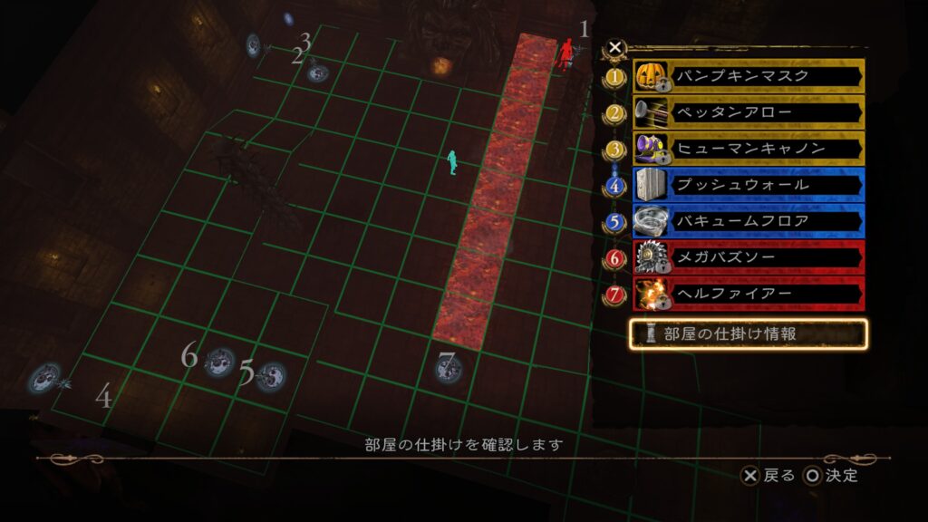 シンプルにトラップが使えないもの、部屋の仕掛けのみで戦う。