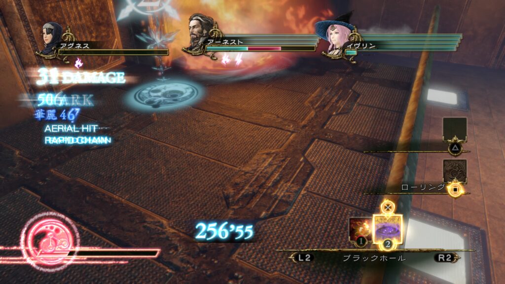 パルマギアというステージが戦いにくいというのもあるけど敵が強い、本編ではまだ出てきていないボスクラスが1体出てくるのとドMの魔女が出てくる。