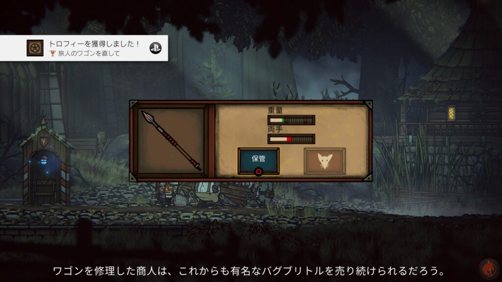 あとは料理が解放された、食べると最大HPが上がるので早めに食べたいが多分ストーリーが進まないと材料を手に入れられなさそうなので天井は決まっていそう。