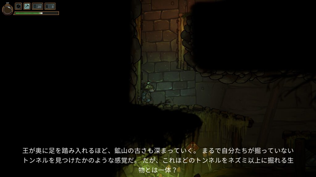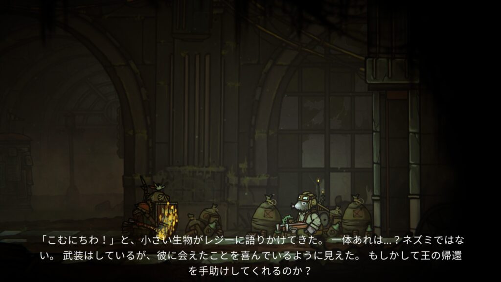 ネズミと違いかなり文明的な生活をしている様子、電気も使えるし銃も持っている、戦争したら勝てなさそう。このモグラとしばらく行動を共にする、相変わらず何かしらを頼んでくる。