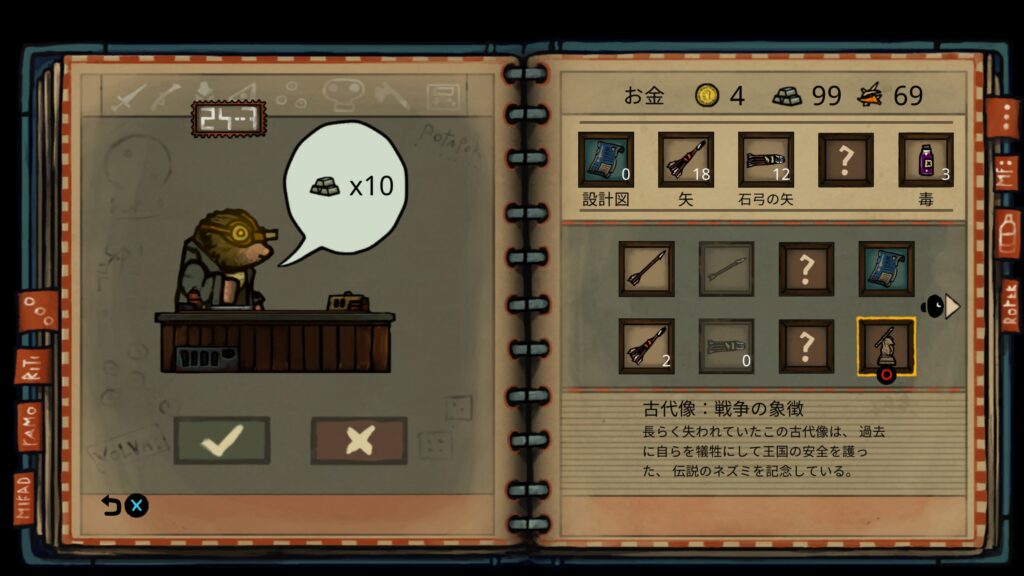 最後の銅像が闘技場近くのショップで販売されている、これで4個揃ったのでウキウキである。